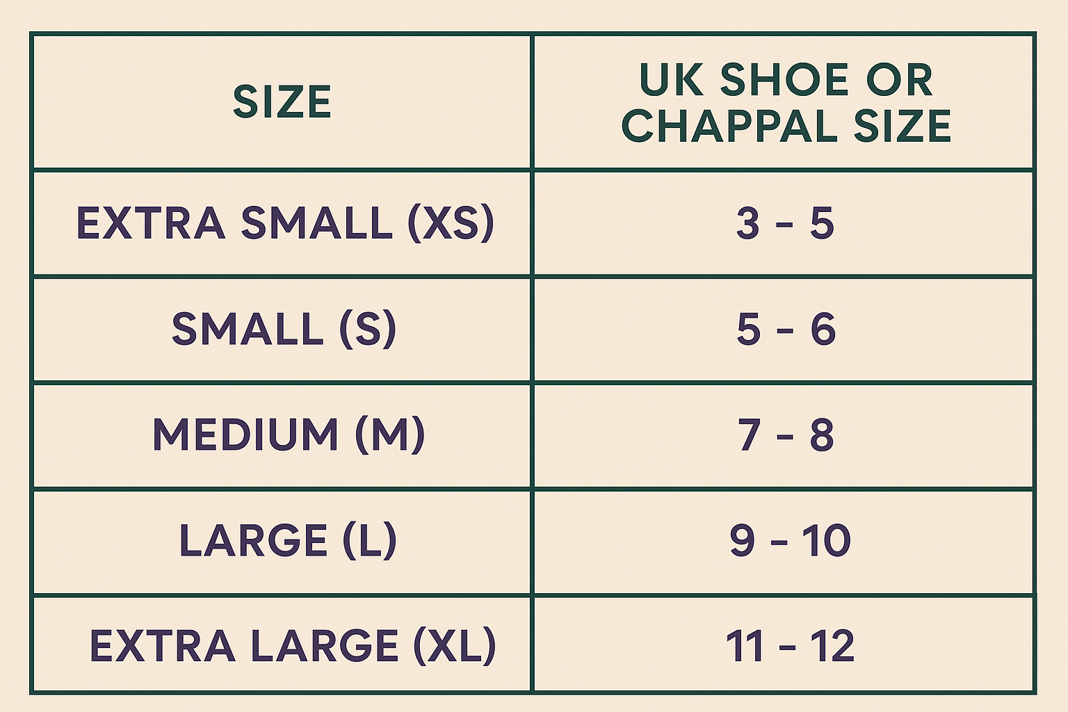 Extra Small (XS)-Size (3-5), Small (S)-Size (5-6), Medium (M)-Size (6-8), Large (L)-Size (8-10), X-Large (XL)-Size (11-12) |