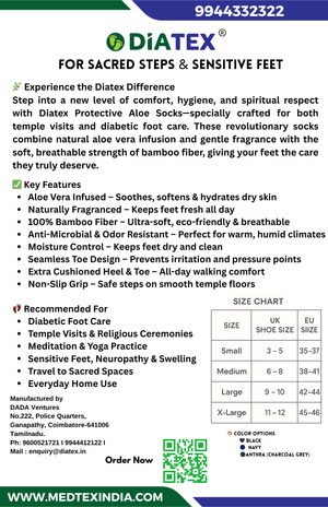Diatex Protective Temple Socks – Soft, Hygienic & Protective Diabetic Temple Socks for Sacred Spaces ✨ Step into Purity. Walk in Comfort. Introducing Diatex Protective...