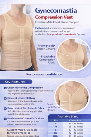 Gynecomastia Compression Vest for Men – Chest Binder Support for Male Breast Reduction | Readymade & Custom Made